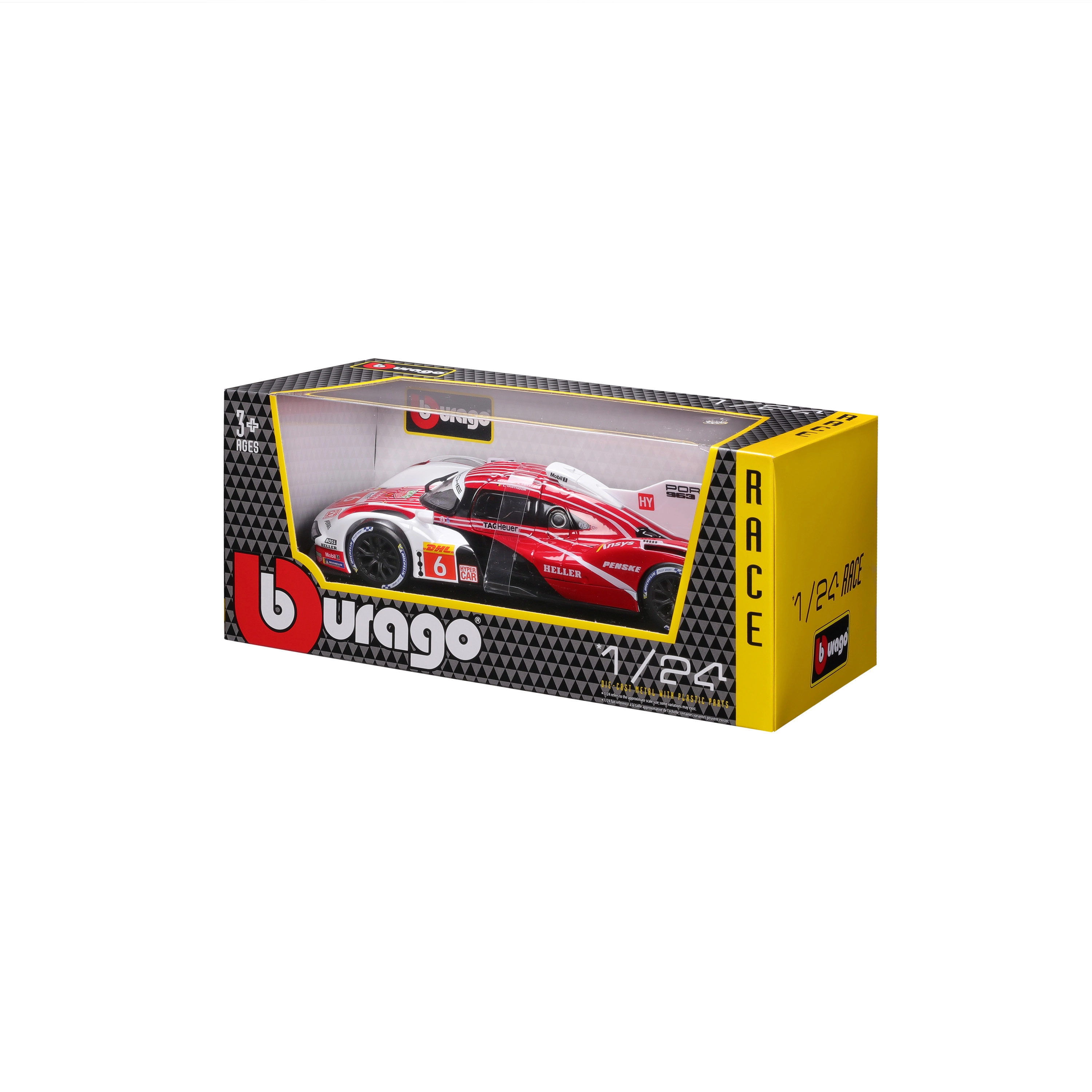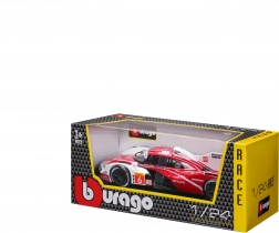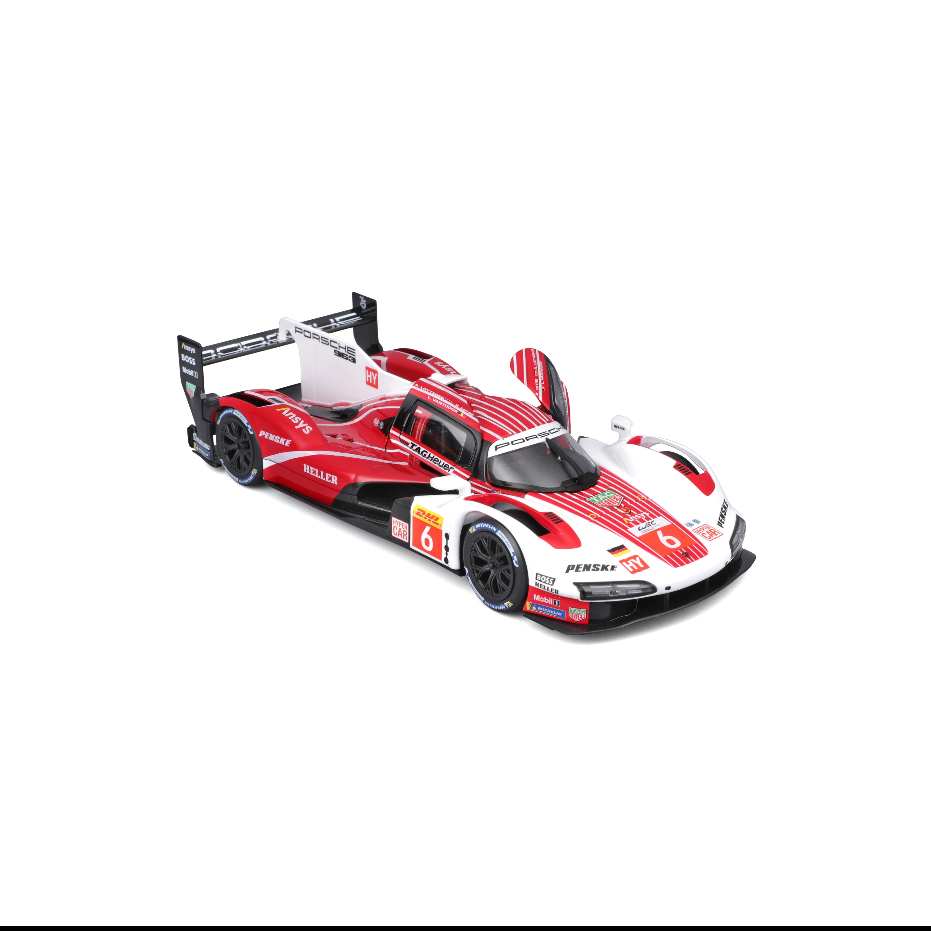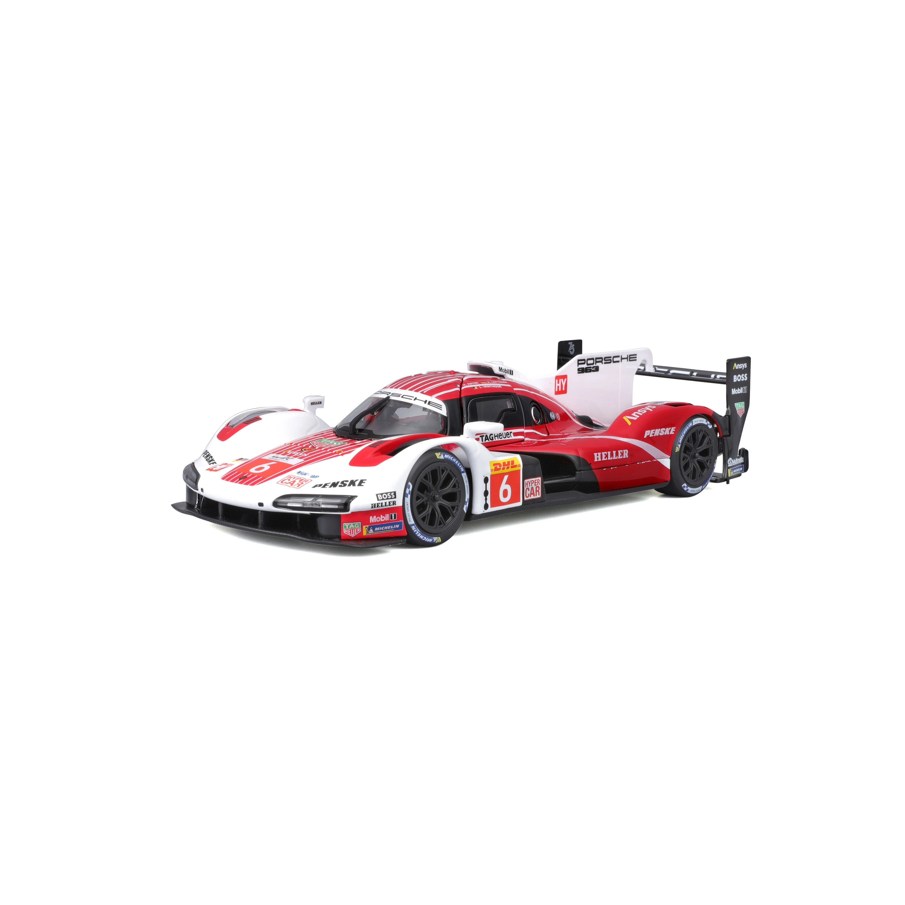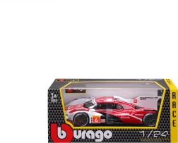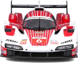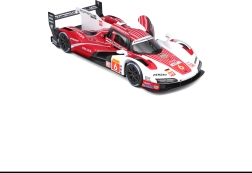 Model Bburago 1:24 vjerno dočarava karakter izdržljivostnog prototipa PORSCHE 963 (2024) u trkaćem crveno-bijelom koloritu sa sponzorskim logotipovima. Metalna karoserija s plastičnim dodacima, precizne linije i autentični aerodinamički elementi naglašavaju kolekcionarsku vrijednost i izgled pri izlaganju.