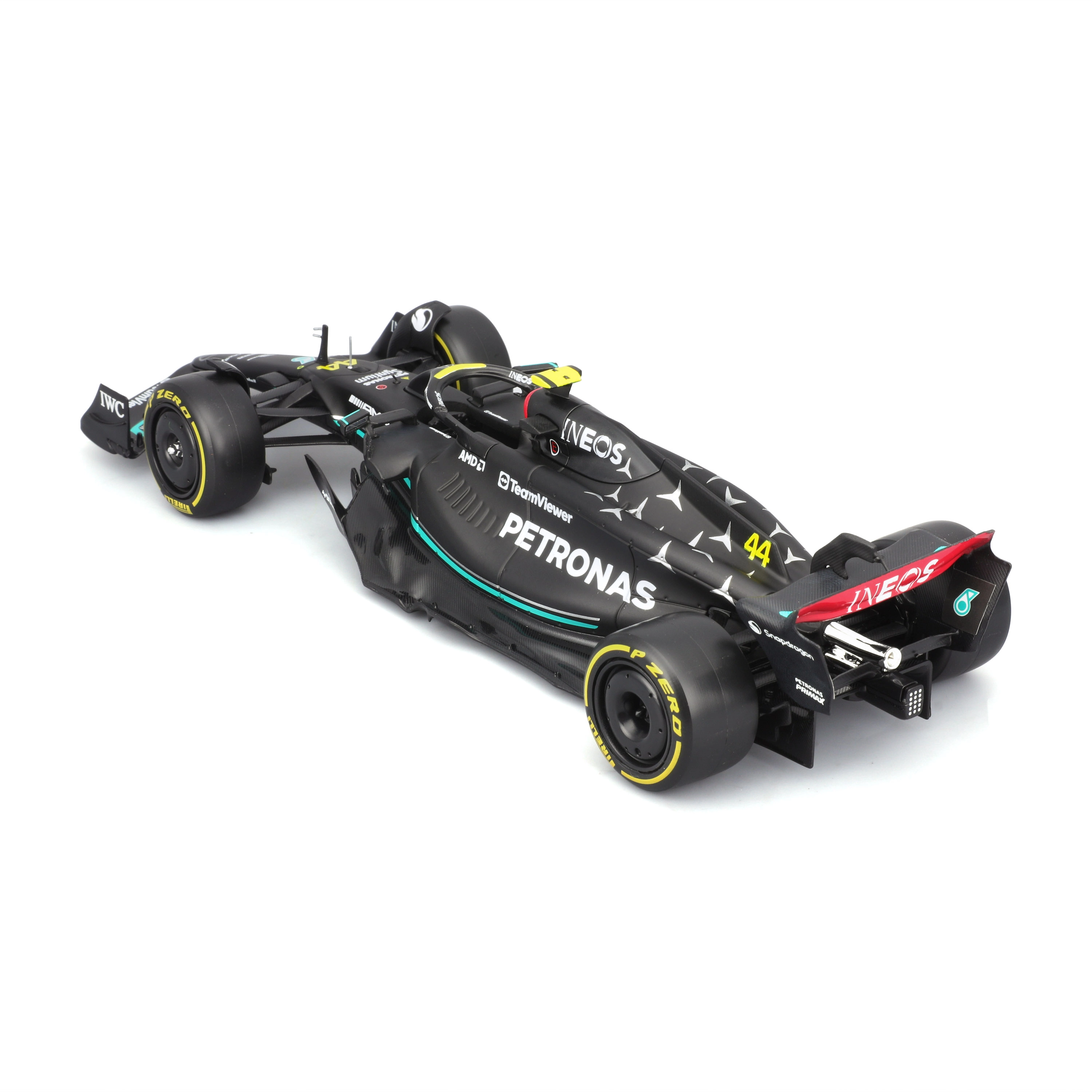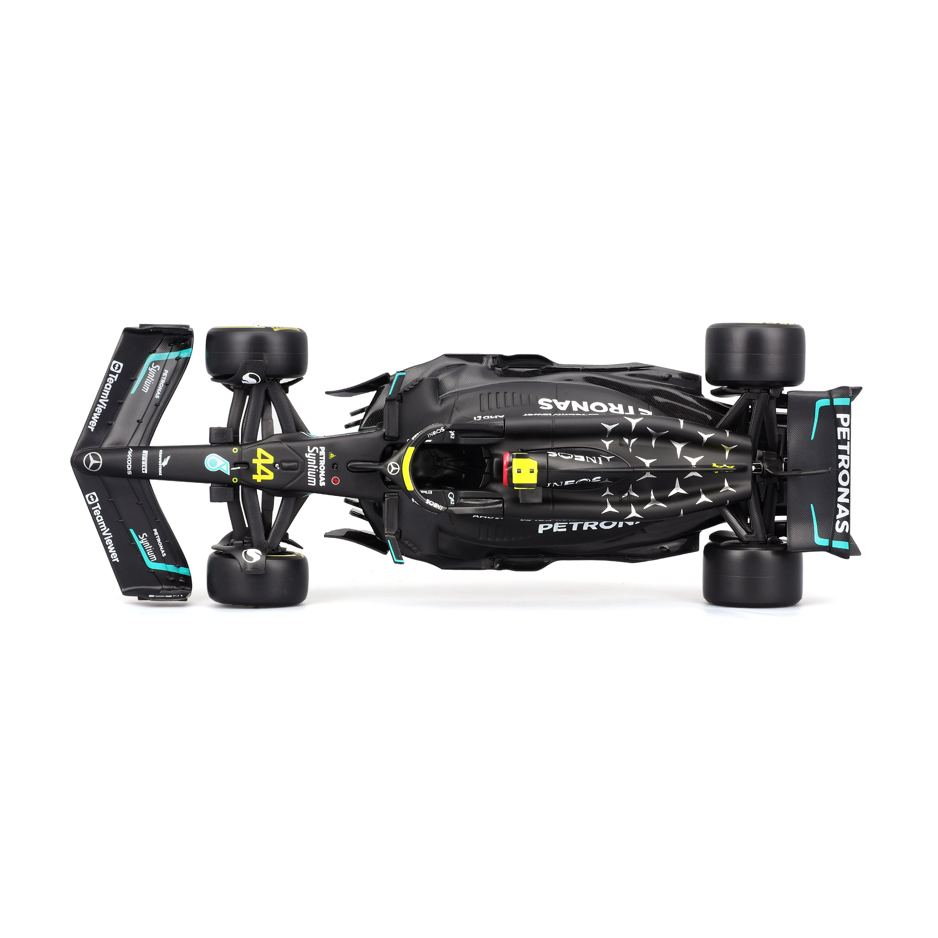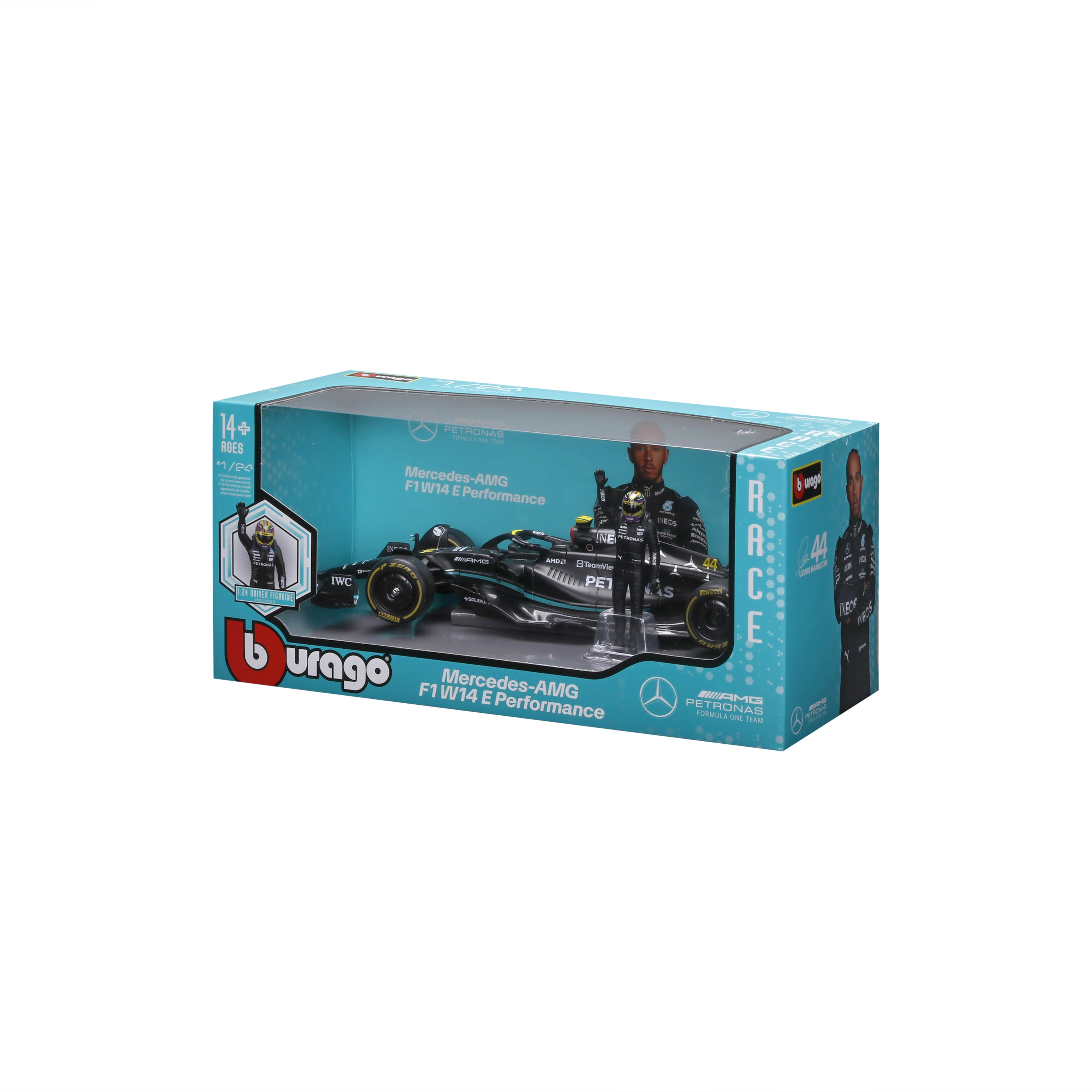 Doživite atmosferu Formule 1 s precizno izrađenim modelom MERCEDES-AMG PETRONAS F1 W14 E u bojama sezone 2023. Vjerna karoserija s brojem 44, složeni aero elementi, realistične gume i autentična grafika naljepnica čine ga dojmljivim dijelom svake kolekcije. U kompletu je i figurica vozača za efektno izlaganje.