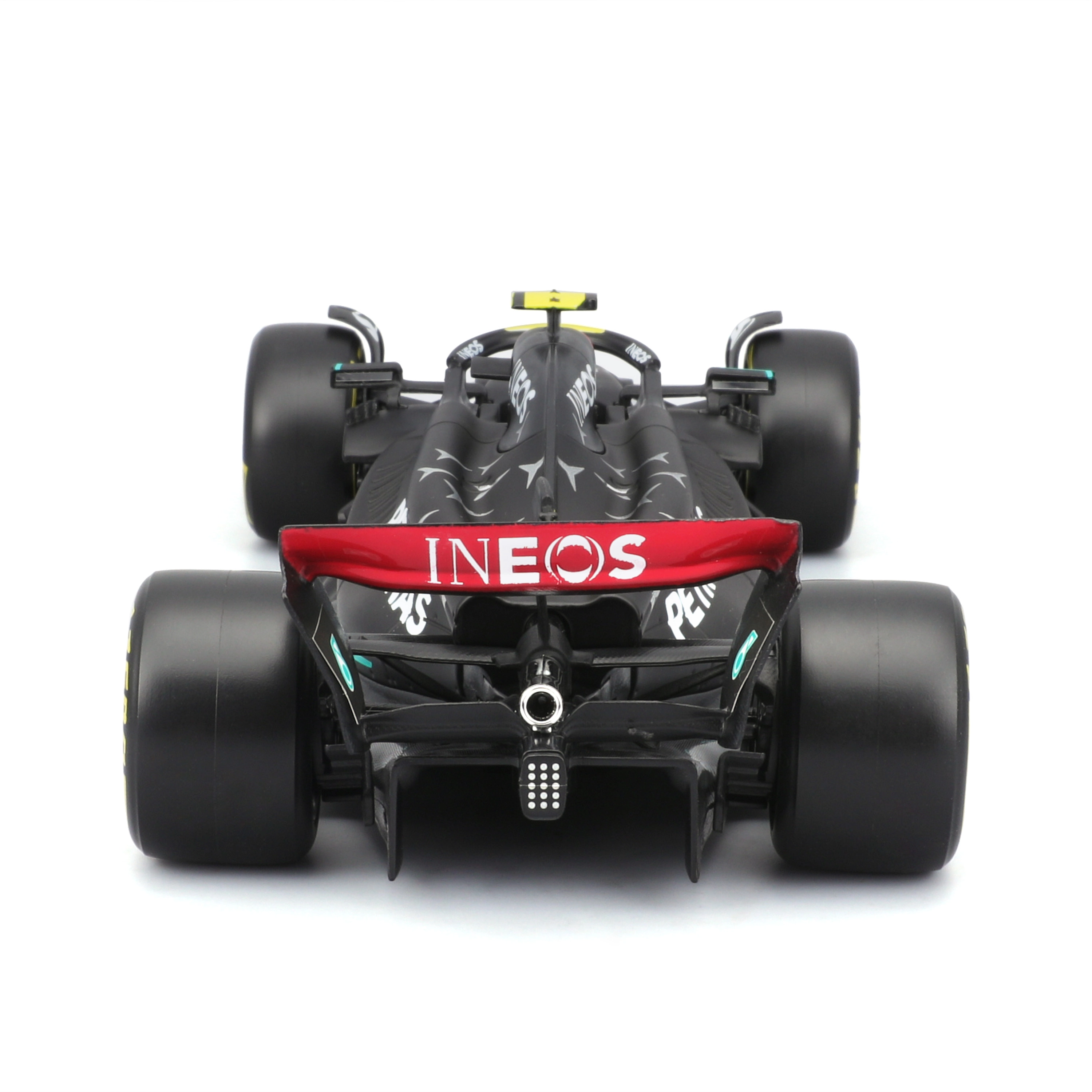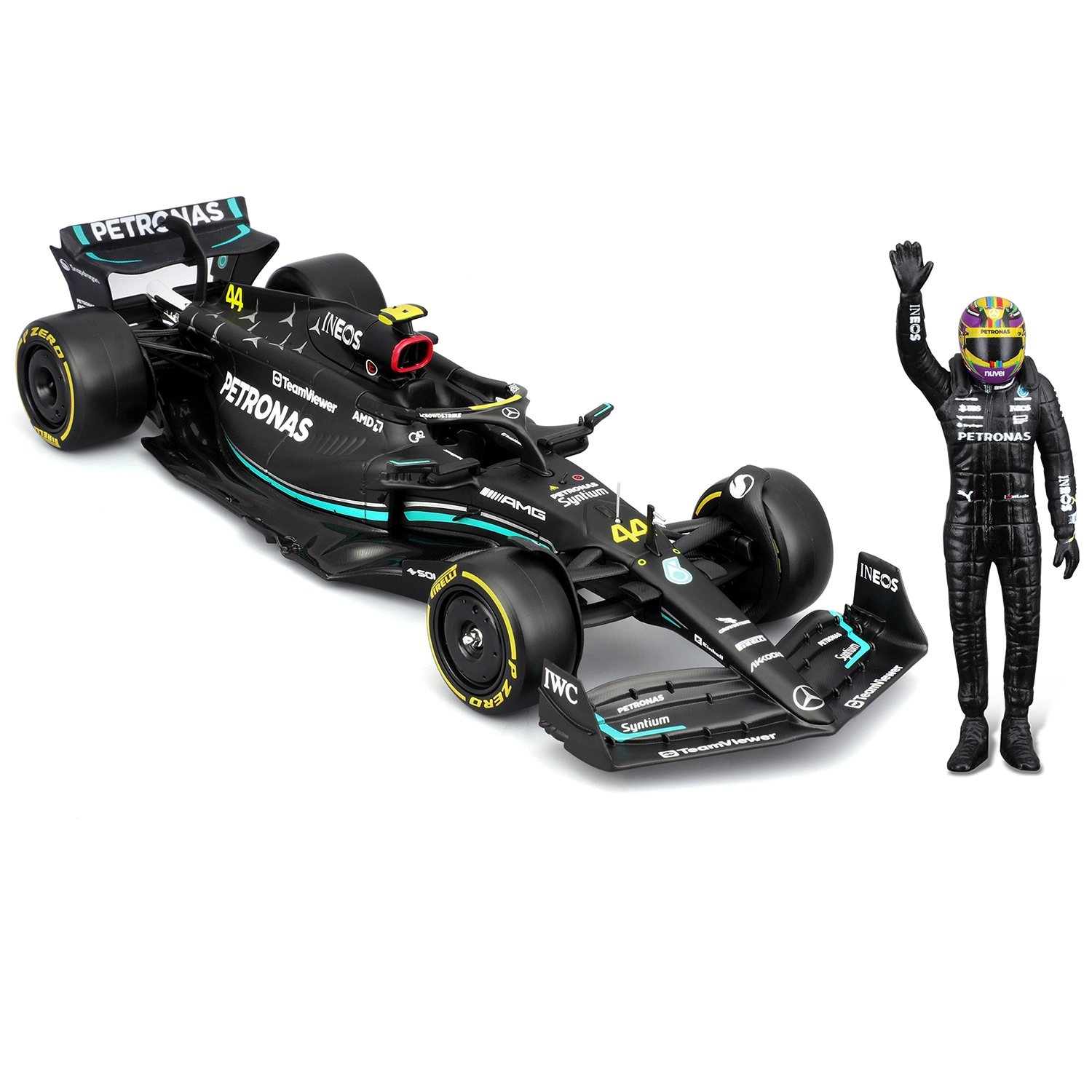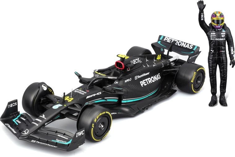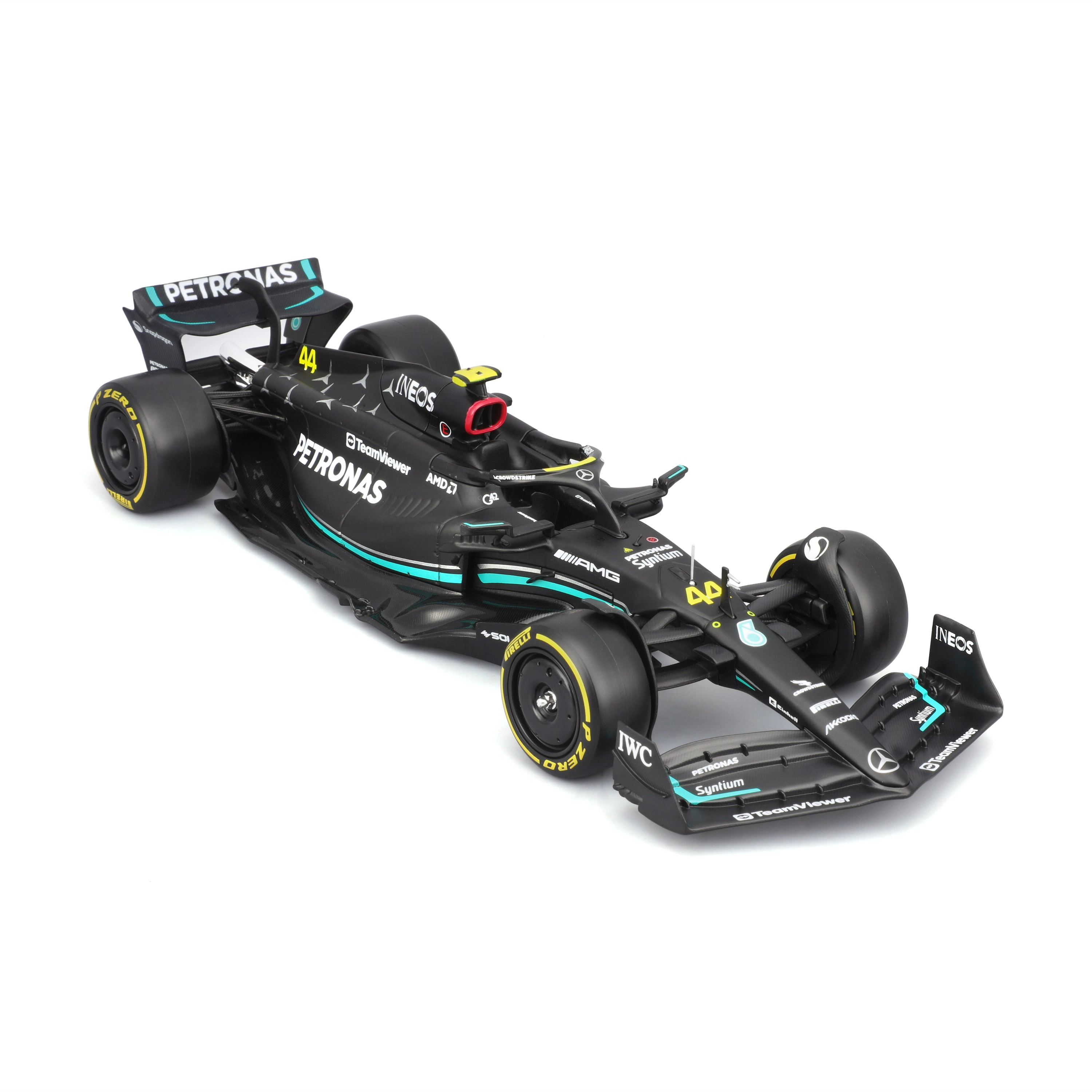 Doživite atmosferu Formule 1 s precizno izrađenim modelom MERCEDES-AMG PETRONAS F1 W14 E u bojama sezone 2023. Vjerna karoserija s brojem 44, složeni aero elementi, realistične gume i autentična grafika naljepnica čine ga dojmljivim dijelom svake kolekcije. U kompletu je i figurica vozača za efektno izlaganje.