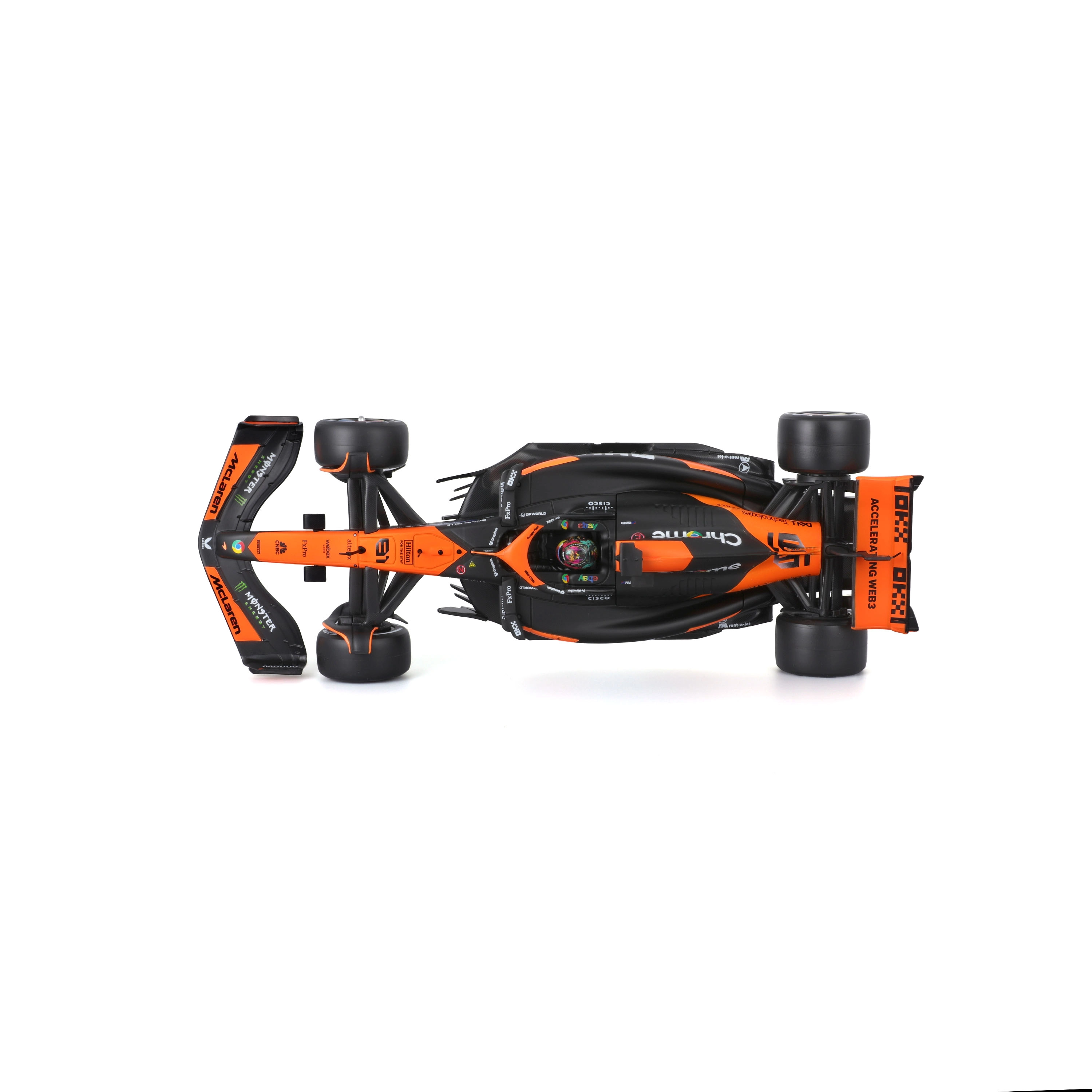 Uživajte u vrhunskoj izradi modela McLaren MCL38 u narančasto‑crnoj izvedbi, koja vjerno prati bolid s Miami Grand Prixa 2024. Realistična karoserija, krila i detalji kokpita s likom vozača čine ovaj model savršenim dodatkom svakoj F1 kolekciji.