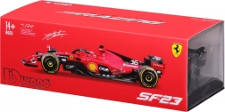 Ovaj precizno izrađen model Ferrari SF-23 iz sezone 2023. prikazuje karakteristične aerodinamičke elemente moderne formule: prednje i stražnje krilo, halo zaštitu kokpita, realistične slick gume te autentične timske i sponzorske naljepnice. Zahvaljujući mjerilu 1:24 ističu se proporcije i fini detalji karoserije.