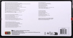 Karoserija je od metala (die-cast) s finim plastičnim detaljima za precizno prikazivanje prednjeg i stražnjeg krila, difuzora i ovjesa. Realistične slick gume, volan i interijer kokpita daju modelu vrhunski izgled. Dekorativna kutija s prozorom omogućuje sigurno pohranjivanje ili stilsko darivanje.