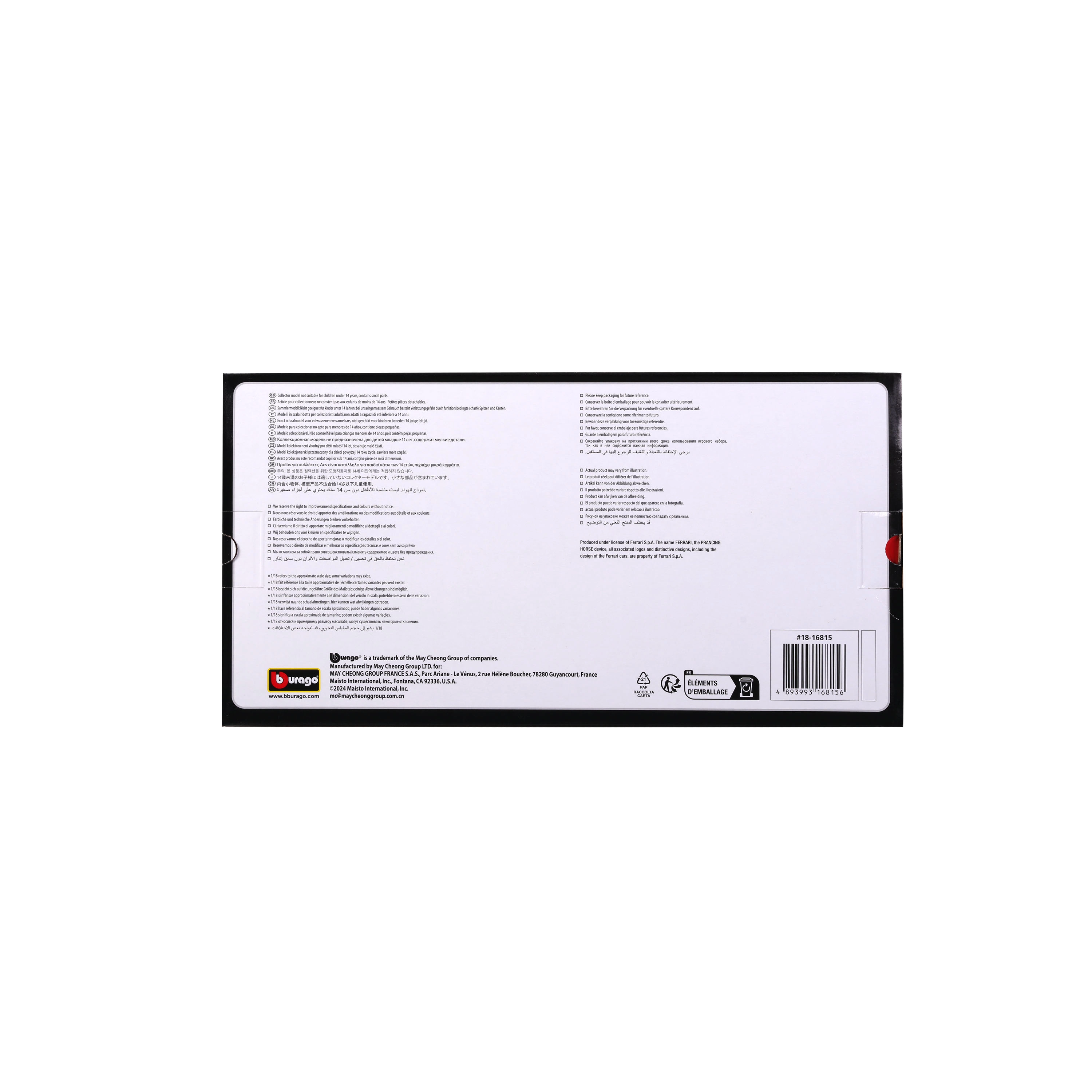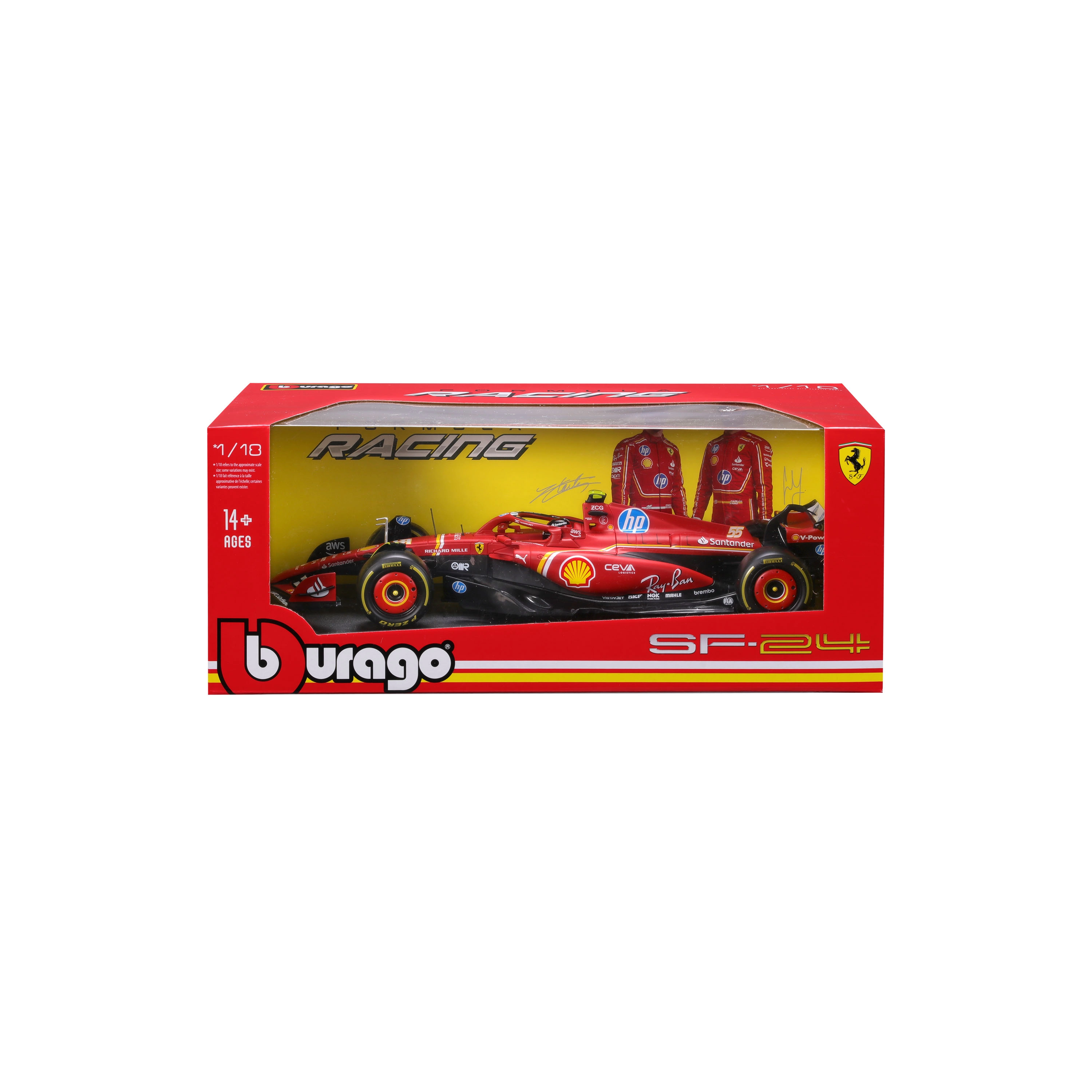 Otkrijte detaljnu repliku bolida Ferrari SF-24 sezone 2024 u ikoničnoj crvenoj boji. Model Bburago donosi vjerne proporcije, oštre linije i kvalitetan tisak sponzora. U pakiranju se nalazi i vozač Carlos Sainz (#55), čime se ističe autentičnost svakog izlaganja.