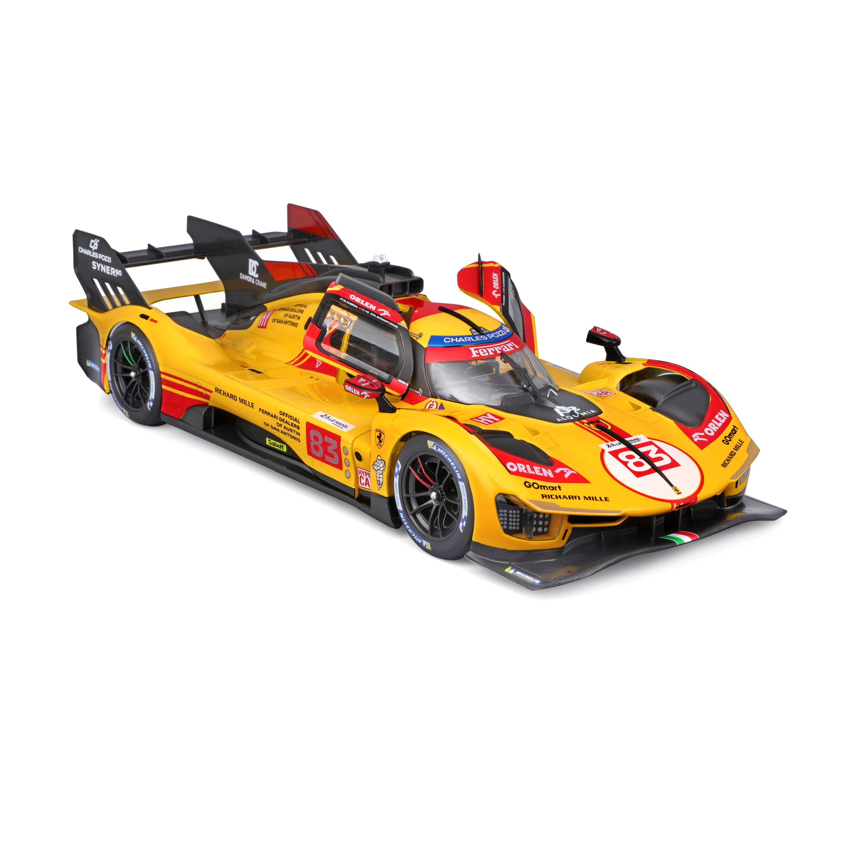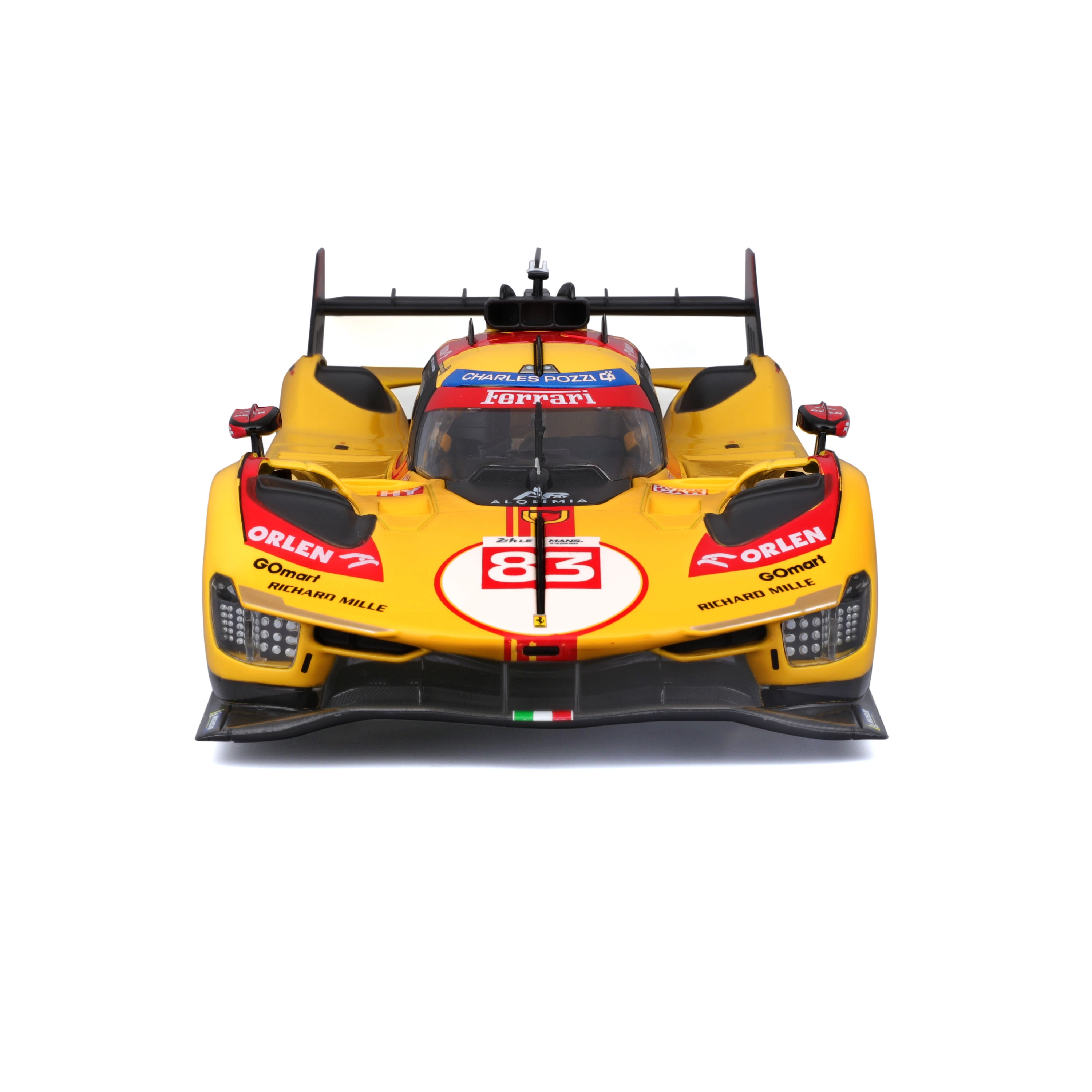 Otkrijte vrhunski izrađen model Ferrari 499P u kultnoj žuto‑crvenoj boji sa startnim brojem 83 s čuvene utrke 24H Le Mans 2024. Metalna izvedba s preciznom završnom obradom, vjerno oblikovana aerodinamika i realistični kočioni diskovi naglašavaju autentičan izgled trkaćeg specijala.
