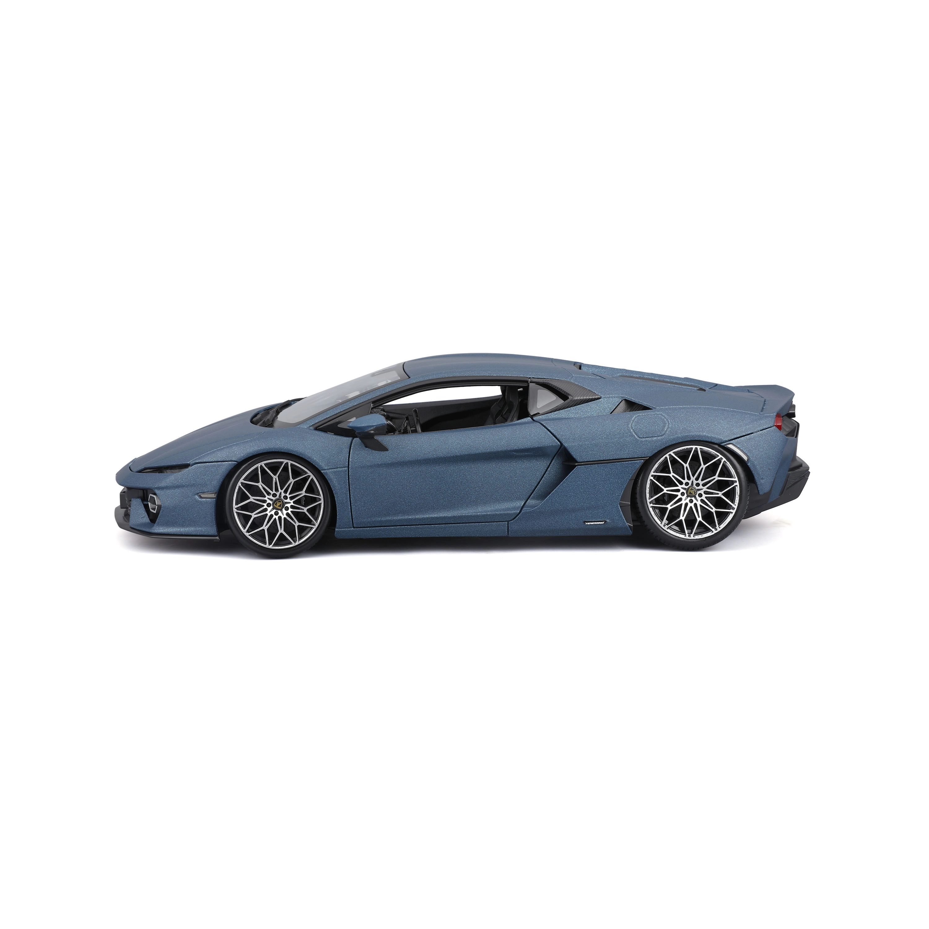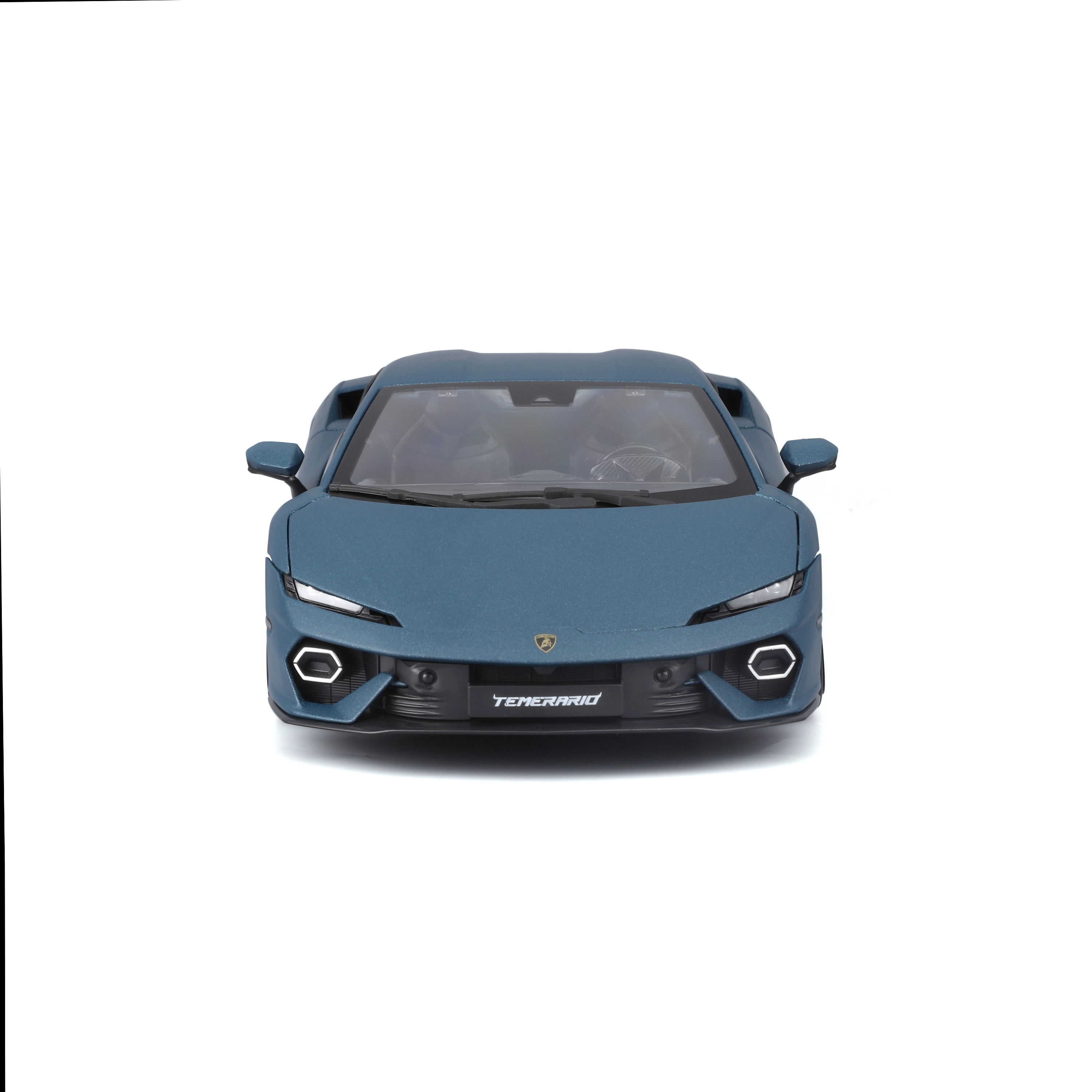Ovaj detaljan model LAMBORGHINI Temerario u mjerilu 1:18 donosi autentičan doživljaj dizajna supersportaša u vašu kolekciju. Mat plavi lak naglašava oštre linije i aerodinamičke elemente, dok prozirni prozori otkrivaju razrađen interijer s realističnim volanom i sjedalima.