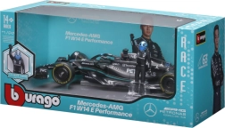Detaljan kolekcionarski model u mjerilu 1:24 vjerno prikazuje bolid MERCEDES‑AMG F1 W14 E (2023) s brojem 63 vozača GEORGE RUSSELL. Model nudi precizan tisak sponzora, aerodinamičke elemente, realistične gume i dodatno figuricu vozača za efektno izlaganje.
