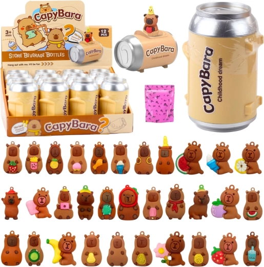 Otkrijte slatko iznenađenje: kapibara u limenci skriva nasumičnu figuricu na privjesku i kolekcionarske karte. Kompaktno pakiranje u limenci razveselit će djecu i kolekcionare, sjajno kao poklon ili stilski privjesak za ključeve, ruksak ili pernicu.
