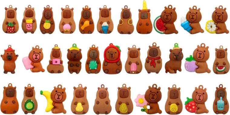 Različiti motivi i dodaci kapibare oduševit će djecu i odrasle. Idealno kao ukras za ključeve ili ruksak.