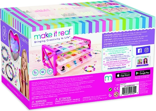 Sve potrebno imate pri ruci: 2600 perlica za neograničene kombinacije, 8 šarenih voskiranih uzica duljine 8 m svaka i elastična nit duga 4 m. Set je idealan za stvaranje kod kuće, za radionice i kao poklon za male izrađivače nakita.