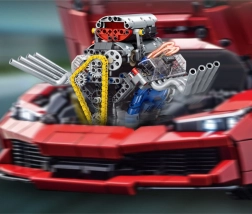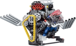 Ovaj detaljan set nudi autentično iskustvo sastavljanja V-motora – od klipova do remenskog pogona. Zahvaljujući napajanju ugrađenom baterijom 3,7 V Li‑ion 200 mAh, nakon sastavljanja model se može pokrenuti i slikovito prikazati princip rada motora s unutarnjim izgaranjem. U pakiranju je i punjač za praktično punjenje.