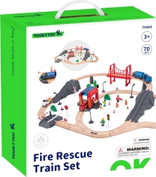 drvena vlakovna set vatrogasci i hitna pomoć 70 dijelova – TOOKY TOY