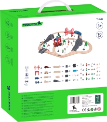 Ova sveobuhvatna drvena željeznica brenda TOOKY TOY pretvara dječju sobu u akcijski spasilački gradić. Djeca mogu slagati različite rute, prelaziti mostove, prolaziti kroz tunele i odigravati uzbudljive priče sa spasilačkim službama – od intervencija vatrogasaca do brze pomoći ambulante. Bogata oprema potiče maštu, kreativnost i igranje uloga.