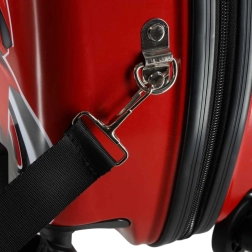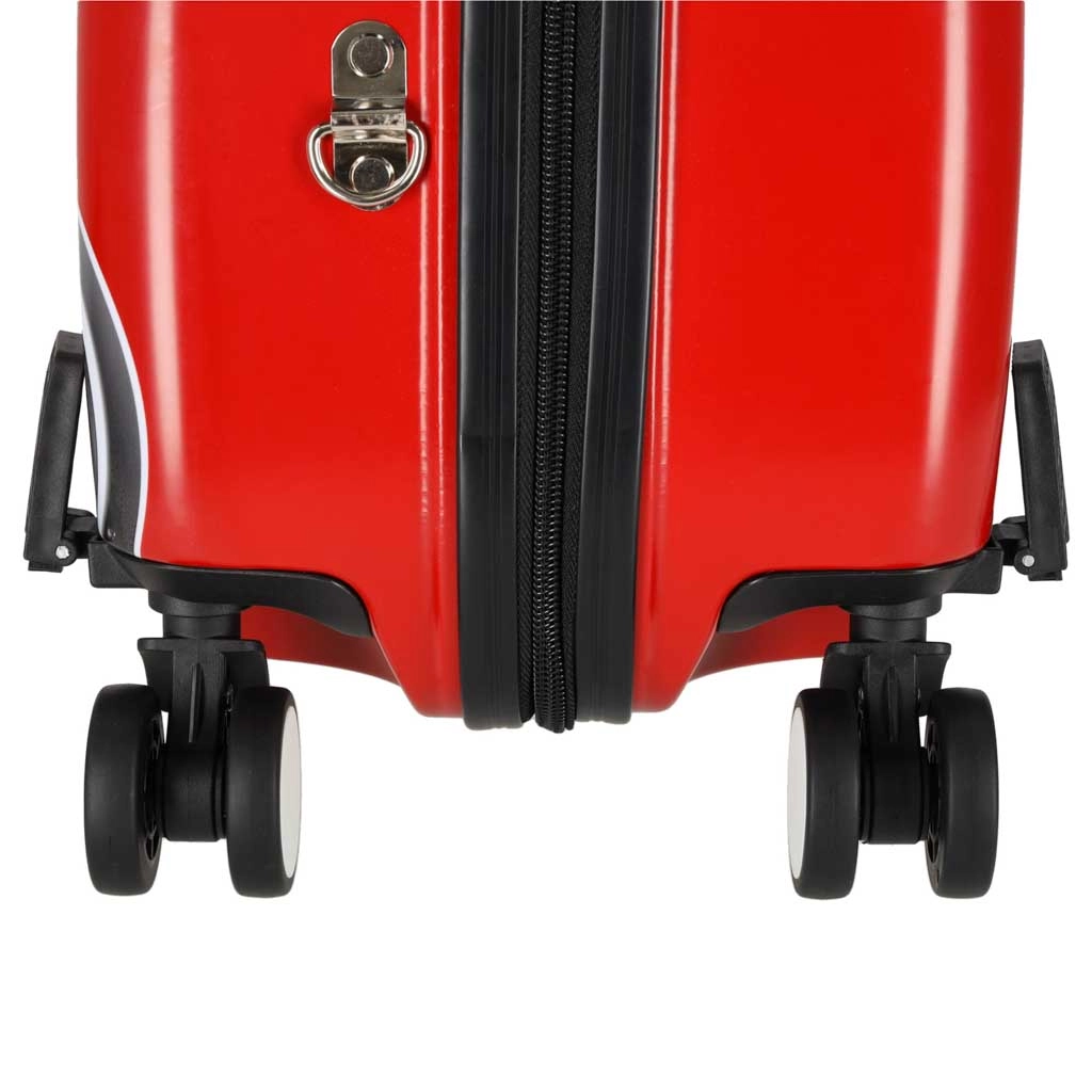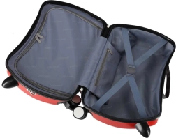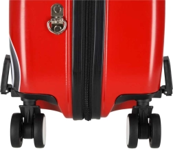 Lagana i izdržljiva školjka ABS+PC podnosi udarce i čestu upotrebu malih putnika. Unutrašnjost nudi pregradu na patentni zatvarač, križne trake i praktičan džep na patent za pregledno spremanje sitnica. Kofer se može nositi u ruci, preko ramena pomoću odvojivog remena (130 cm) ili udobno vući na kotačima.