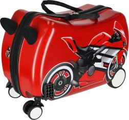 Dječji kofer na kotačima s motivom motocikla pretvara čekanje u zračnoj luci i putovanje u zabavu. Dijete može udobno sjesti na kofer i pustiti da ga vuku, dok stabilni prednji rogovi–rukohvati povećavaju siguran hvat pri vožnji. Pametna kombinacija dvaju čvrstih stražnjih kotača i dvaju prednjih okretnih 360° osigurava stabilnost i izvrsnu upravljivost.