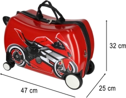 Zabavan i praktičan suputnik na putovanja: ovaj dječji kofer s motivom motocikla spaja funkciju guralice i kabinsku prtljagu. Zahvaljujući četiri tiha kotačića, laganoj konstrukciji i odvojivom ramenom remenu djeca ga lako guraju, vuku ili nose. Izdržljiva tvrda školjka od ABS+PC štiti stvari na putu, a kapacitet od 30 litara prima sve potrebno.