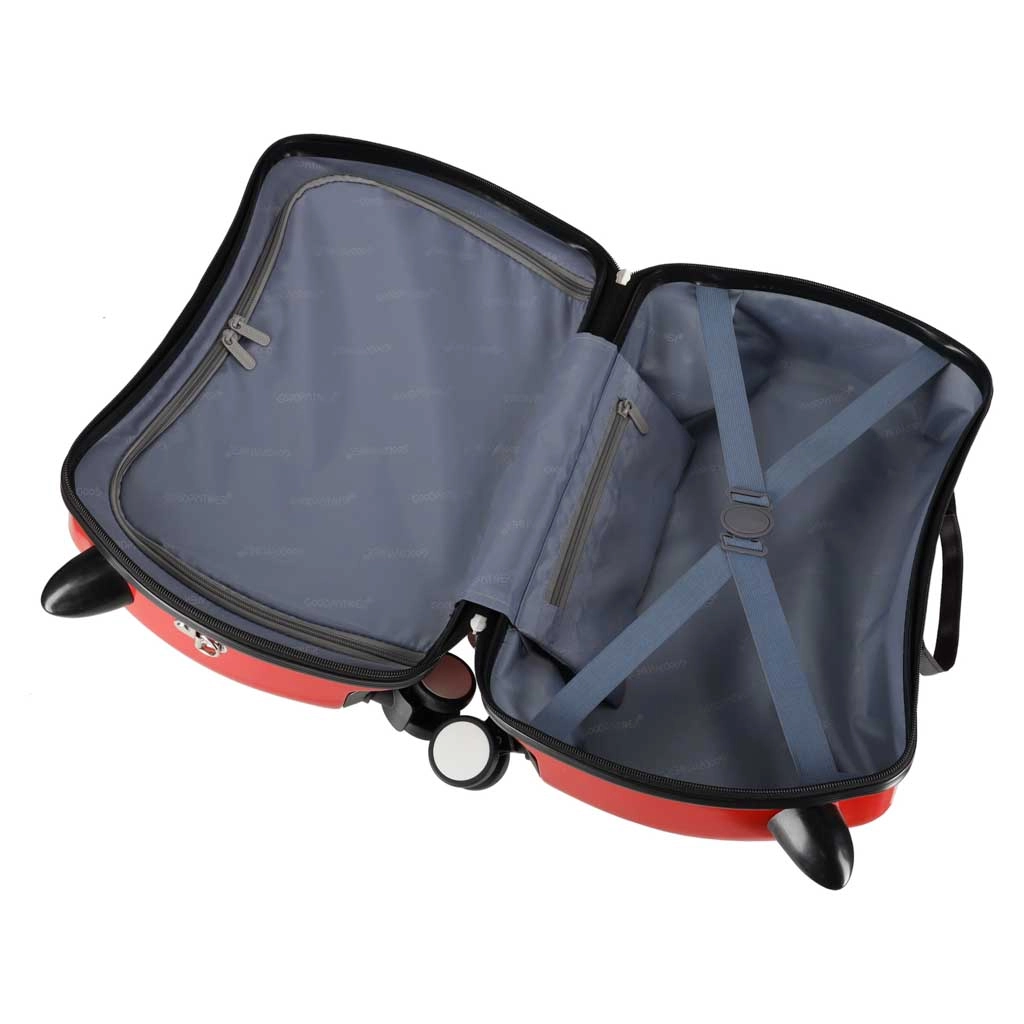 Dijete može sjesti na kofer i pustiti da ga vuku. Prednji “rogovi” služe kao sigurni rukohvati, a dvorazinski kotačići osiguravaju stabilnost i lako manevriranje.