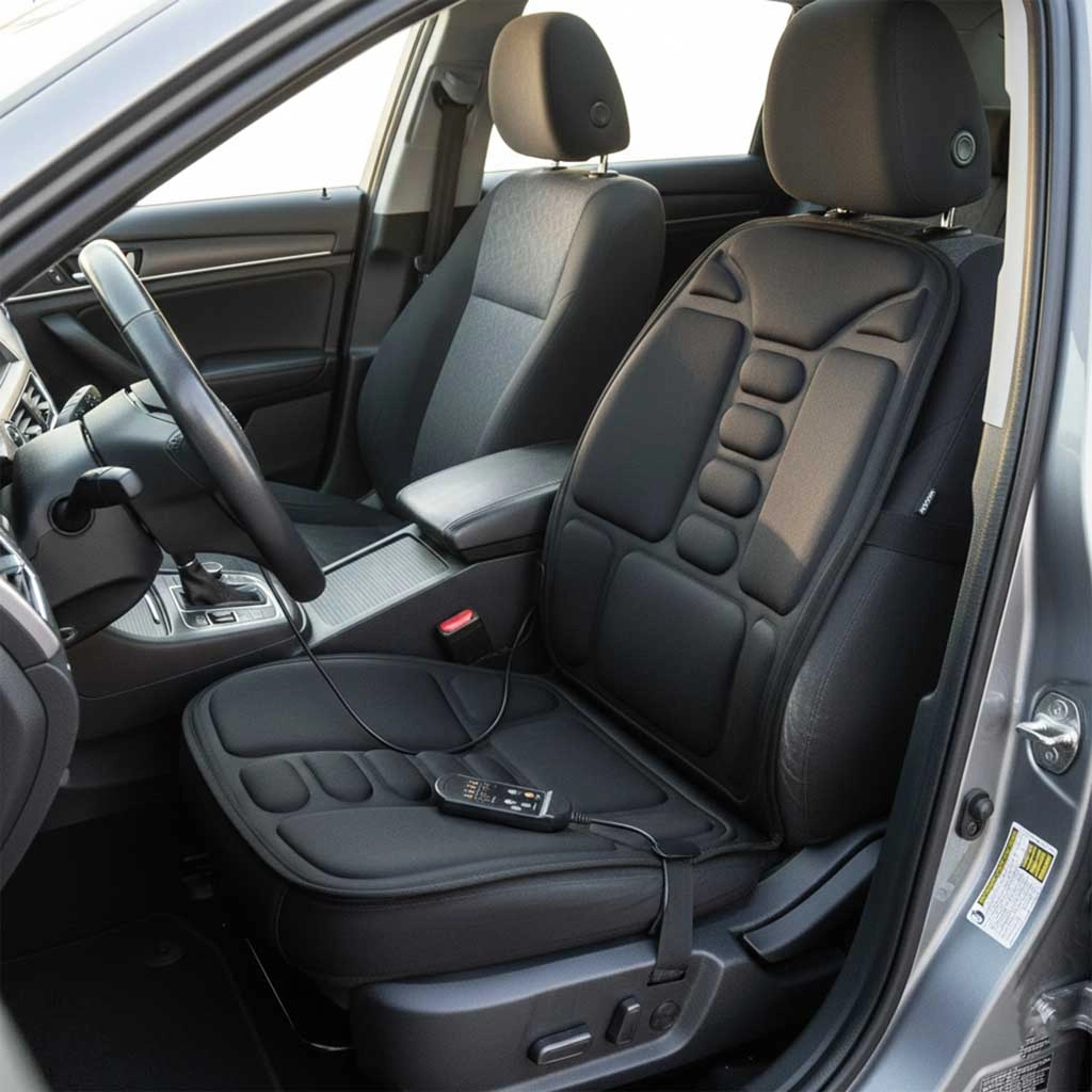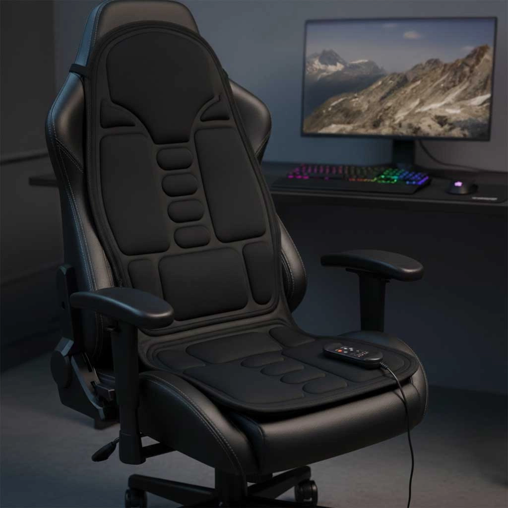 Ova udobna masažna navlaka za sjedalo pruža ciljanu vibracijsku masažu leđa i bedara, a zahvaljujući integriranom grijanju pomaže zagrijati mišiće. Jednostavno pričvršćivanje elastičnim trakama osigurava stabilnost na uredskoj stolici, gaming fotelji i autosjedalu.
