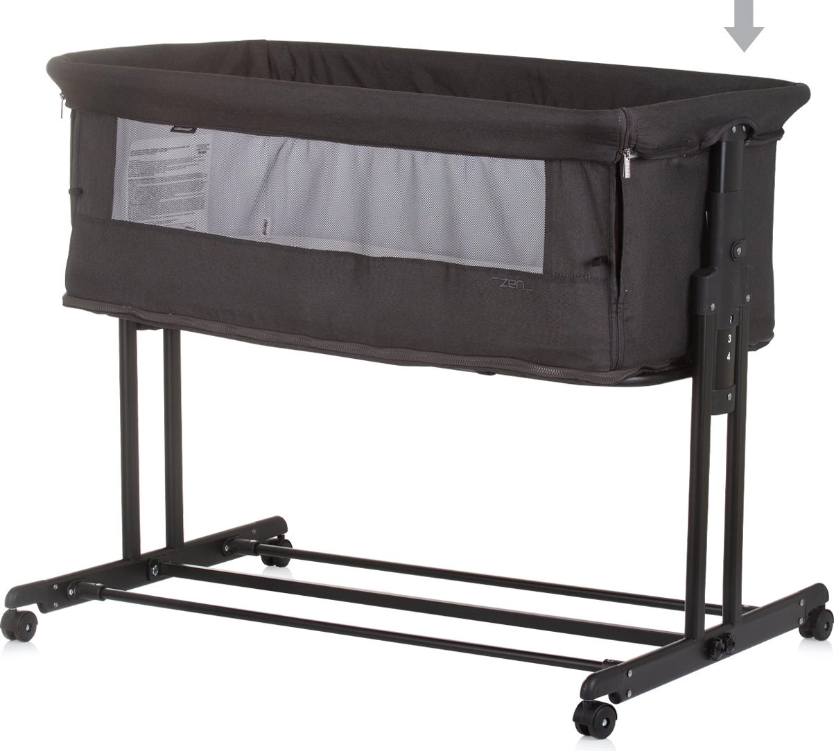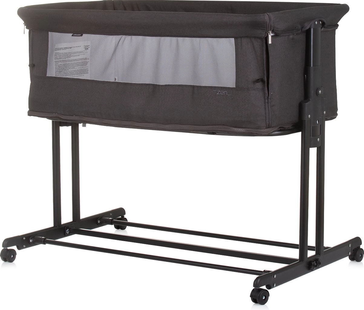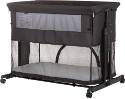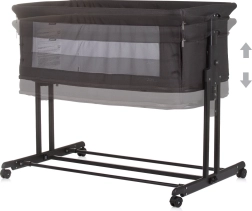 CHIPOLINO Zen Obsidian je praktičan priključni krevet i krevetić za novorođenče do 6 mjeseci (do 9 kg), koji lako pretvarate u vrtić za djecu do 15 kg. Prozračne mrežaste bočne stranice osiguravaju cirkulaciju zraka i vizualni kontakt, dok spuštajuća duga bočna stranica omogućuje da vam je beba uvijek nadohvat ruke.