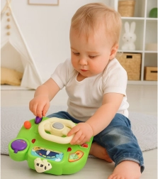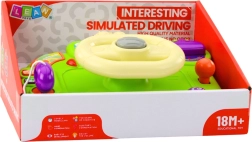 Dječji simulator vožnje donosi realistične efekte – okretanjem volana na panelu se pomiče mali autić i pale se žmigavci uz zvuk skretanja. Šarene tipke reproduciraju 8 MIDI melodija i 7 zabavnih zvučnih efekata, truba je uvijek pri ruci, a ručica mjenjača aktivira zvuk ubrzavanja i vožnje unatrag. Radi uštede energije, igračka se nakon 10 minuta neaktivnosti sama uspava.