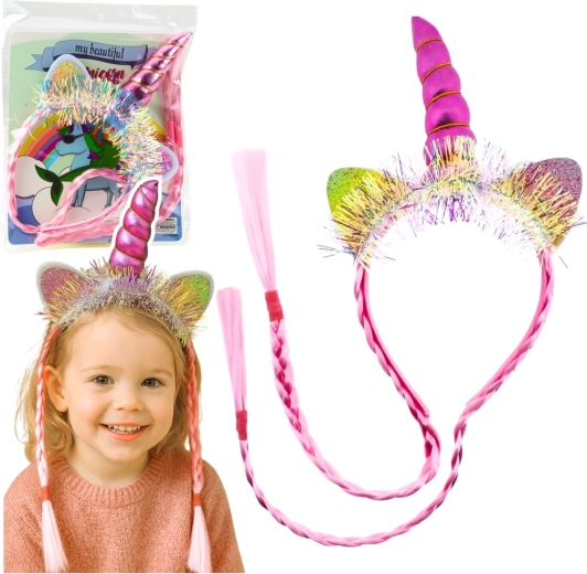 Čarobna ružičasta traka za kosu u stilu jednoroga s rogom, ušima i dugim pletenicama idealna je za djecu i odrasle. Odlično pristaje zahvaljujući univerzalnoj veličini, ugodna je za nošenje i svakom outfitu daje magičan izgled – za proslave, fotografiranje, karneval i svakodnevnu zabavu.