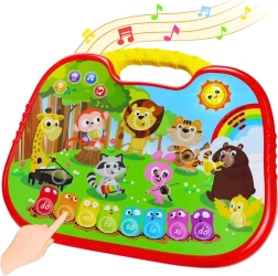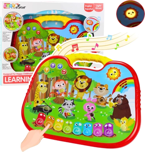 Interaktivna obrazovna ploča sa životinjama je zabavna pomagala za najmlađe koja spaja učenje, glazbu i dodirnu interakciju. Nudi 4 načina igre (jezični, glazbeni, klavirčić, kviz), zvukove životinja, melodije i dodirnu ploču s pozadinskim osvjetljenjem ikona. Podržava koordinacijske vještine, sluh, pamćenje i razvoj govora, a zahvaljujući prijenosnoj konstrukciji s ručkom i stalkom idealna je za dom i putovanja.