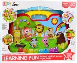 Otkrijte pametno dizajniranu interaktivnu ploču koja djecu na razigran način upoznaje sa svijetom životinja. Dodirna ploča reagira na pokret prsta, aktivira zvukove životinja, melodije i edukativne poruke. Zahvaljujući jezičnom načinu (engleski i španjolski) proširuje rječnik i potiče razumijevanje.