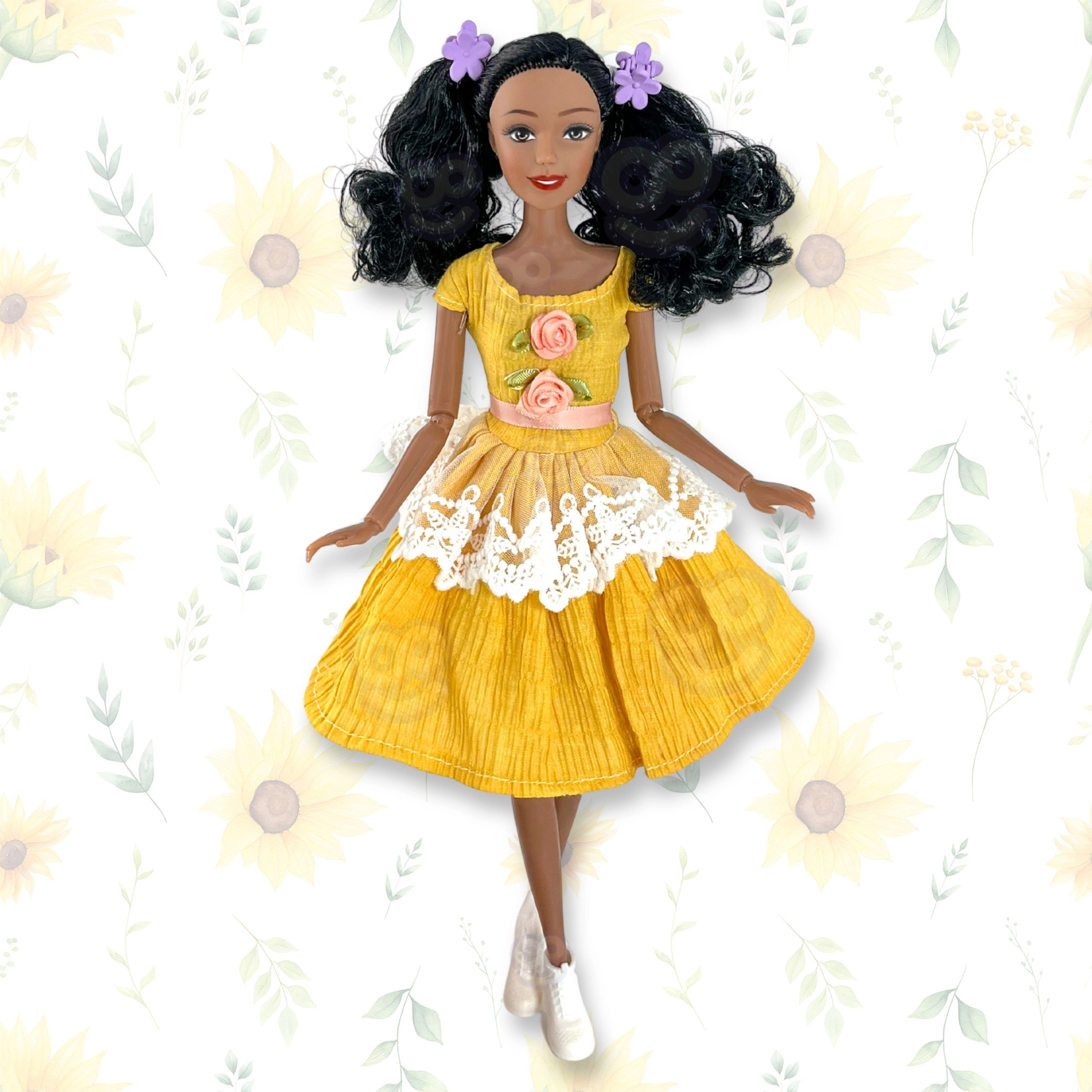 Lutka Emi razveselit će svaku malu zaljubljenicu u modu. Moderna žuta haljina s čipkom i sitnim cvjetićima, usklađeni dodaci i nježni detalji čine ovu lutku pravom damom. Kvalitetna izrada osigurava ugodnu igru i dug vijek trajanja.