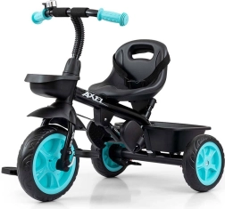 Praktična i sigurna tricikla za najmlađe od 1 do 3 godine. Nudi izdržljiv čelični okvir, podesivo sjedalo, roditeljsku vodilicu i široke EVA gume za udobnu vožnju. Zahvaljujući mogućnosti isključenja pogona pedala dijete se može udobno gurati. Dvije košarice, zvonce i trodijelni (3-točkovni) pojasevi osiguravaju zabavu i sigurnost na svakoj vožnji.