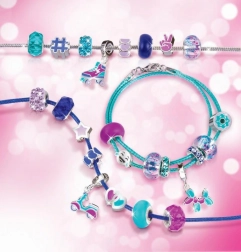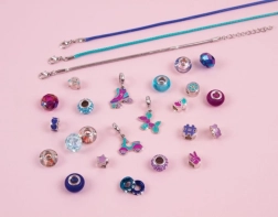 Uz ovaj stilski set djeca i početnici pretvaraju svoje ideje u pravi nakit. Pakiranje sadrži sve što je potrebno – od šarenih perlica i tematskih privjesaka do narukvica i jednostavnog priručnika. Kombinirajte nijanse plave i ljubičaste, dodajte srebrne akcente i izradite nakit koji savršeno izražava vašu osobnost.