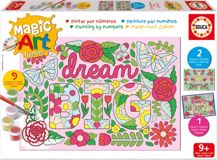 Otkrijte radost stvaranja uz set Educa slikanje po brojevima – cvijeće. Zahvaljujući unaprijed otisnutim segmentima i priloženim bojama, slikanje je jednostavno, zabavno i prikladno čak i za početnike. Aktivnost razvija koncentraciju, koordinaciju i prepoznavanje boja.