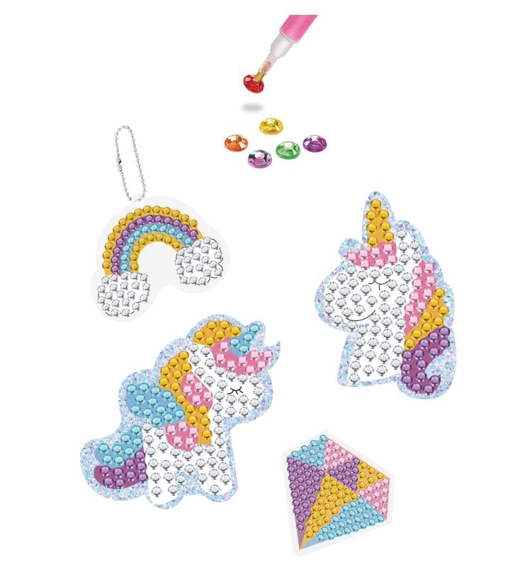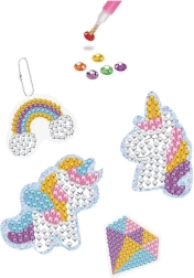 Uz ovaj set svaki mali stvaratelj u trenu se pretvara u zlatara. Dovoljno je slijediti predložak, lijepiti blistave kamenčiće i u nekoliko trenutaka nastaju originalni privjesci i naljepnice s fantasy motivima. Gotove radove možete pričvrstiti na ruksak, pernicu ili ih pokloniti prijateljima.