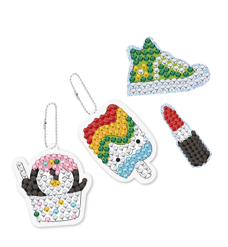 Gotove privjeske lako pričvrstite na patentni zatvarač, ključeve ili ruksak, a naljepnice će ukrasiti bilježnice, dnevnike i dodatke. Idealan poklon za sve koji vole sjaj i stvaranje.