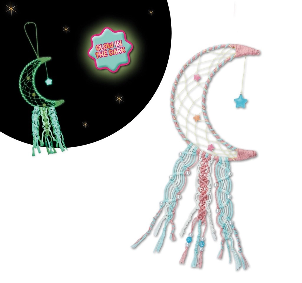 Uz ovaj originalni set djeca lako mogu izraditi vlastiti hvatač snova u obliku Mjeseca. Nakon izlaganja svjetlu nježno svijetli, pa je odličan iznad kreveta, uz prozor ili na zidu te pretvara sobu u ugodan prostor.