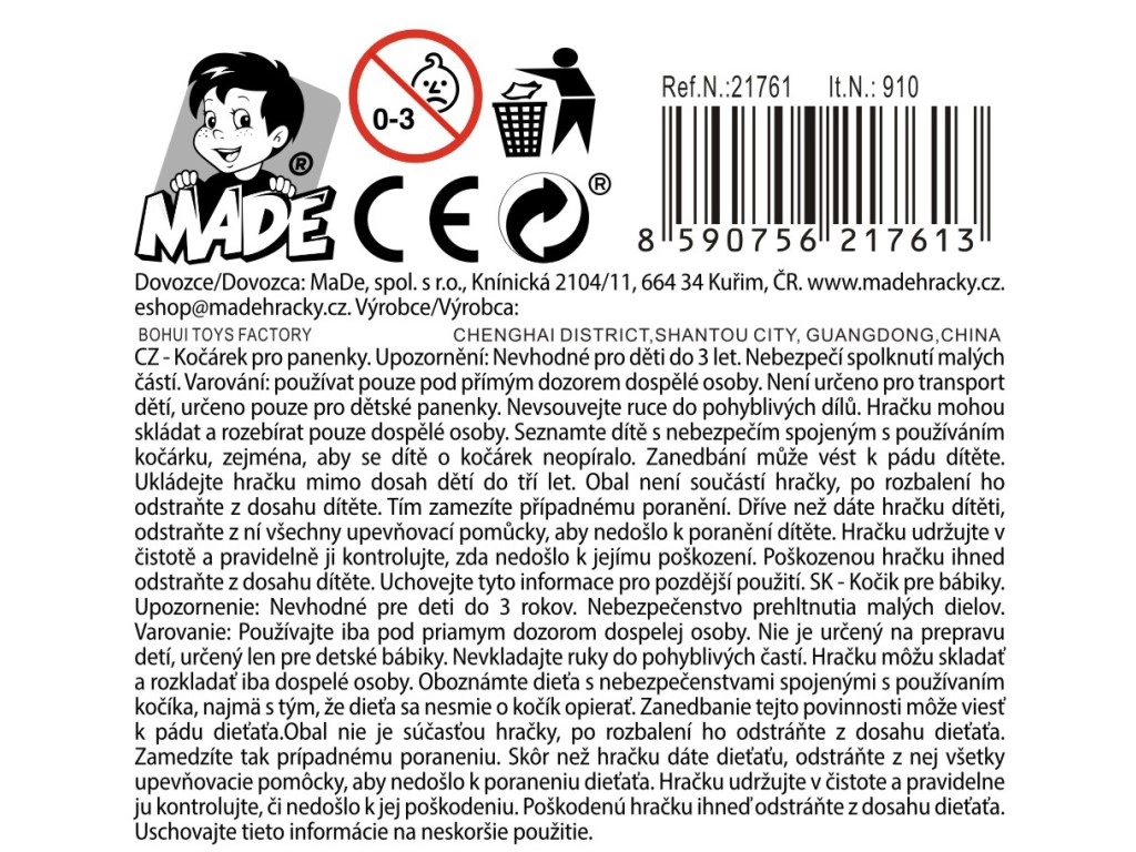 Lagana i stabilna dječja kolica tipa sklopiva (golf) za djevojčice od 3 godine. Nude jednostavno upravljanje, izdržljiv plastični okvir i dovoljno prostora za lutke. Dostupna u 4 varijante boja, pakirana na header kartici za jednostavno izlaganje.