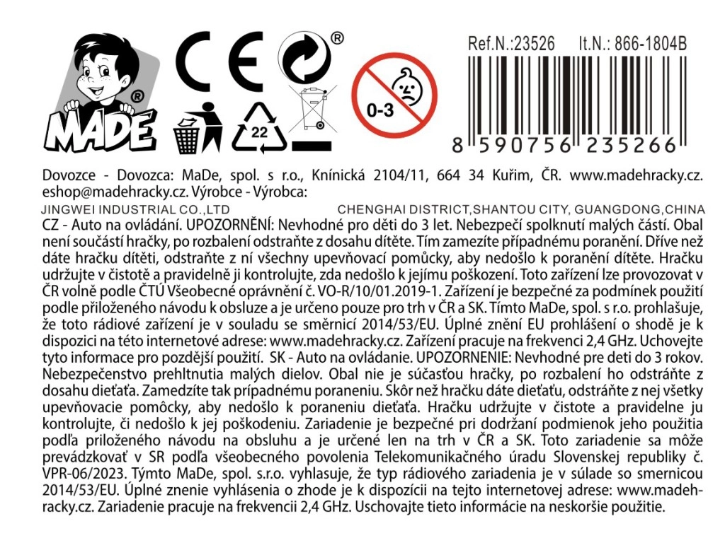 Ovaj auto na daljinsko upravljanje duljine oko 26 cm idealan je prvi izbor za male vozače. Zahvaljujući jednostavnom upravljanju, s njim se lako snalaze i najmlađa djeca, dok robusna izrada osigurava dug vijek trajanja pri svakodnevnoj igri.