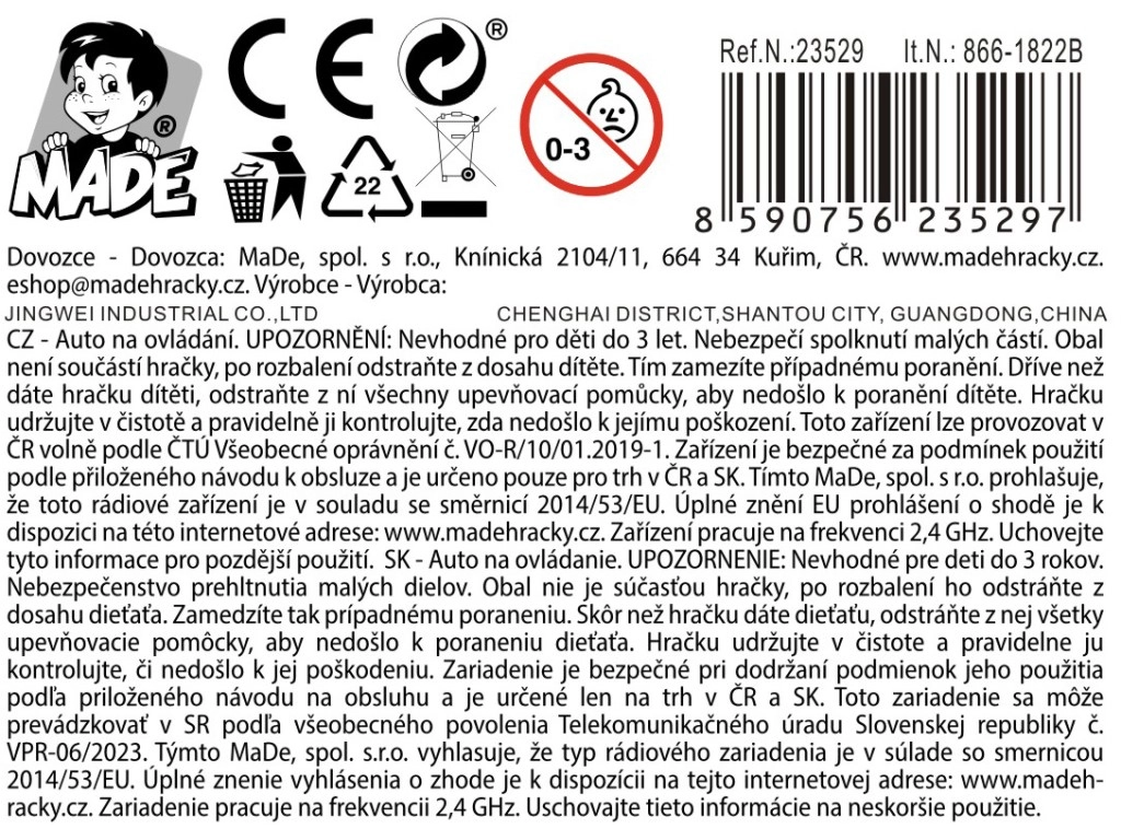 Auto se napaja lako dostupnim AA baterijama, pa je spremno krenuti na stazu u bilo kojem trenutku. Kutija s prozorčićem služi kao praktično pakiranje za pohranu i kao lijep poklon. Igra s RC autom potiče razvoj fine motorike, koncentracije i koordinacije oko–ruka.