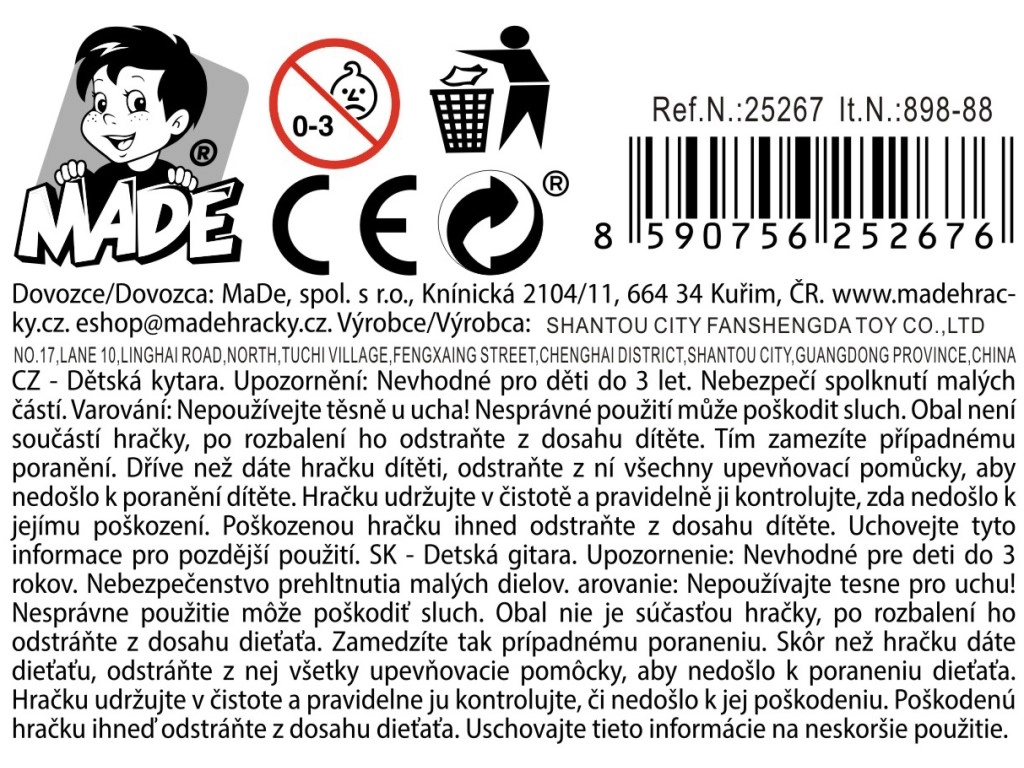 Otkrijte radost glazbe s ovom laganom i izdržljivom dječjom gitarom, idealnom za prve korake malih i velikih glazbenika. Zahvaljujući kompaktnim dimenzijama 57,5 × 21,5 × 7,3 cm udobno leži u ruci, šareno izvedenje potiče kreativnost, a izdržljiv plastični materijal osigurava dug vijek trajanja. Isporučuje se u otvorenom pakiranju, ne zahtijeva baterije.