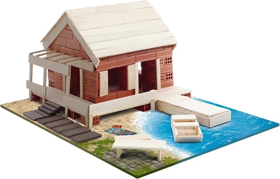 Postanite graditelj i stvorite vlastitu ljetnu rezidenciju od pravih glinenih cigli i drva. Set nudi realističan građevinski doživljaj – od temelja do završnih detalja i dekoracija. Možete pratiti slikovni priručnik ili pustiti mašti na volju i osmisliti vlastito rješenje. Dovršenu građevinu oživite priloženim papirnatim figuricama.