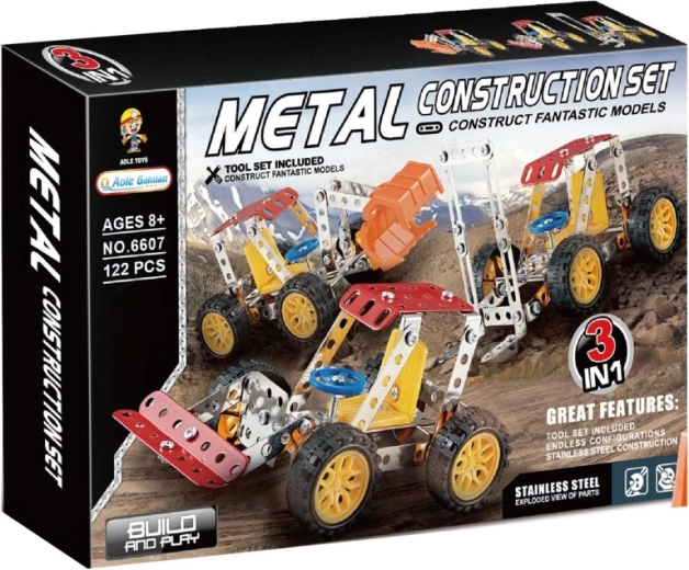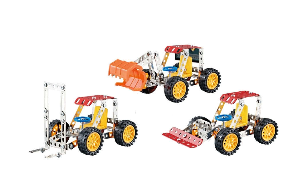 Sastavite vlastiti model građevinskog stroja od robusne metalne konstrukcijske igre sa 122 dijela. Dijelovi se povezuju pomoću vijaka i matica, pa je gradnja čvrsta, zabavna i ujedno izazov za spretne ruke. Ovaj set kombinira metalne elemente s plastičnim dodacima i nudi jednostavno, ali promišljeno rješenje za male tehničare i odrasle entuzijaste.