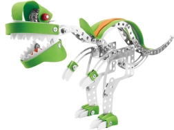 Složite vlastitog dinosaura! Ova metalna konstrukcijska slagalica tiranosaura sadrži 140 dijelova, uključujući metalne komponente i plastične dodatke, koji se spajaju pomoću vijaka i matica. Sastavljanje je zabavno, jednostavno i ujedno ugodno izazovno za spretne ruke i bistru glavu.