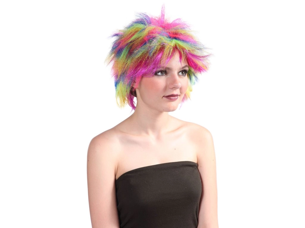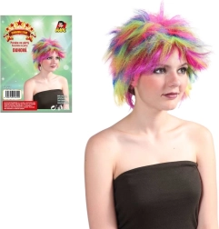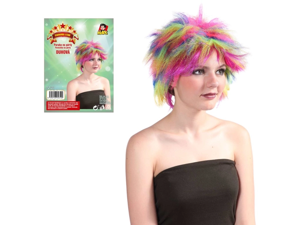 Ova šarena perika Multicolor odličan je dodatak za karneval, proslave i tematske zabave. Zahvaljujući izdržljivom materijalu zadržava oblik i izražajne boje, a perika se lako stavlja i skida.