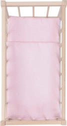 Ova drvena kolijevka za lutke spaja prirodan izgled, sigurnost i radost igre. Glatko brušeno drvo bez oštrih rubova nježno je prema dječjim rukama, a čvrsta konstrukcija osigurava dug vijek trajanja pri svakodnevnoj igri. U kompletu su mekani madrac i obostrana posteljina u nježnim ružičastim tonovima, koji se uklapaju u svaku dječju sobu.