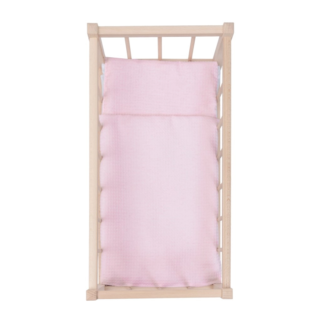 U kompletu su madrac, jastučić i poplun u nježnoj ružičastoj boji – mekani, ugodni na dodir i skladno usklađeni u set.