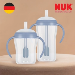 Trenažna bočica NUK Perfect Match sa silikonskom slamkom zapremnine 260 ml olakšava prirodan prijelaz s bočice na šalicu. Nudi ekstra mekšu i fleksibilnu slamku sa širokim osloncem za usne, tehnologiju protiv curenja tekućine i indikator kontrole temperature za sigurno posluživanje napitaka. Proizvedeno u Njemačkoj od kvalitetnih materijala.