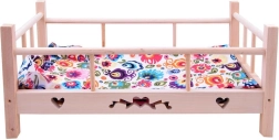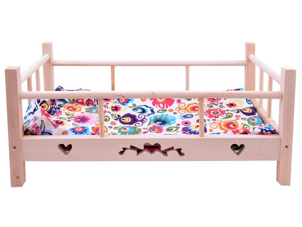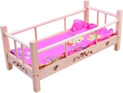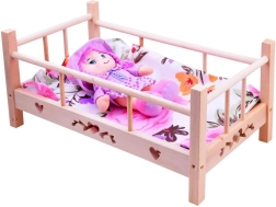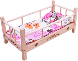 Preslatki drveni krevetić za lutke do visine 50 cm s mekanim jastučićem i dekicom. Izrađen od prirodnog neobrađenog drva, ima čvrste bočnice i stabilnu konstrukciju za dugu i sigurnu igru. U paketu je tekstilno ležište. Prirodno drvo, kvalitetna izrada i kompletan posteljni set razveselit će svaku malu njegovateljicu.