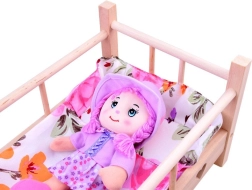- Drveni krevetić, jastučić, deka (lutka nije uključena)