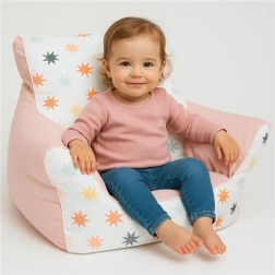 Udobna i lagana dječja fotelja New Baby s punjenjem od polistirenskih kuglica izvrsno se prilagođava tijelu i osigurava maksimalnu udobnost tijekom odmora i igre. Ima odvojivu pamučnu navlaku s patentnim zatvaračem, bez tvrdih elemenata radi sigurnosti djece i stilski ružičasti dizajn s preslatkim printom. Prikladno za djecu otprilike od 2 do 10 godina.