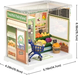 Otkrijte svijet minijatura s detaljno izrađenom trgovinom voća i povrća. Slagalica u mjerilu 1:26 kombinira drvo, papir i plastiku, pa gotov model izgleda realistično i stabilno čak i bez upotrebe ljepila ili alata. Idealno za ljubitelje DIY projekata koji traže miran odmor i smislenu zabavu.
