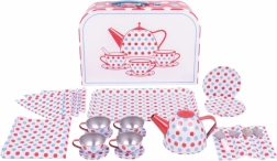 Prekrasan čajni set s točkicama u kovčežiću idealan je za male domaćine. S raznobojnim metalnim čajnim setom, uključujući čajnik, šalice, tacnu i stilski kovčežić, čajanka će biti pravo veselje.