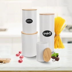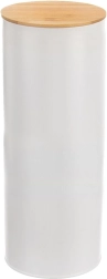 Minimalističko izvedenje u bijeloj boji s prirodnim drvom postaje elegantan dodatak radnoj plohi i otvorenim policama. Posuda je univerzalna za svakodnevnu upotrebu te će vam pomoći održati red i svježinu u kuhinji.